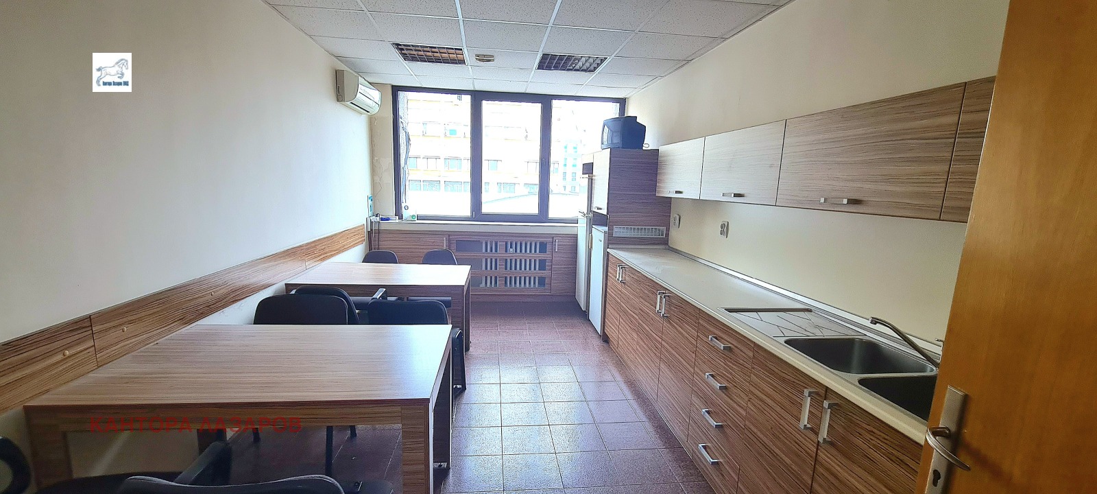 КАНТОРА ЛАЗАРОВ има удоволствието да Ви представи светъл и просторен офис, разположен на втори етаж от пет в административна сграда в един от най-предпочитаните квартали на столицата, в близост до Скай Сити мол, ИЧС, бизнес сгради, магазини, заведения и спирки на градски транспорт. Офисът е с площ от 1070кв.м. и разполага с множество на брой помещения с различна големина, някои от които с топла връзка. Има възможност за разделяне на два отделни офиса, според желанието на наемателя.