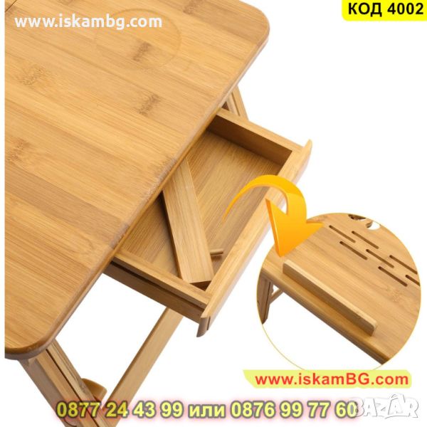 Бамбукова масичка за лаптоп с чекмедже - КОД 4002