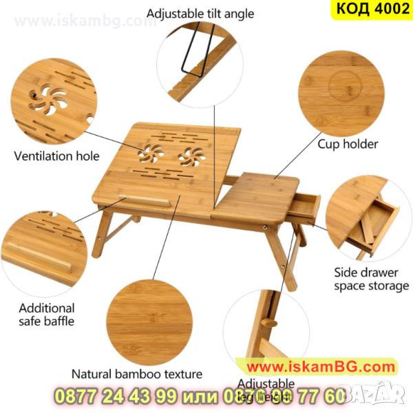 Оптимизирайте вашето работно пространство с нашата бамбукова масичка за лаптоп, съчетаваща функционалност и елегантен дизайн.