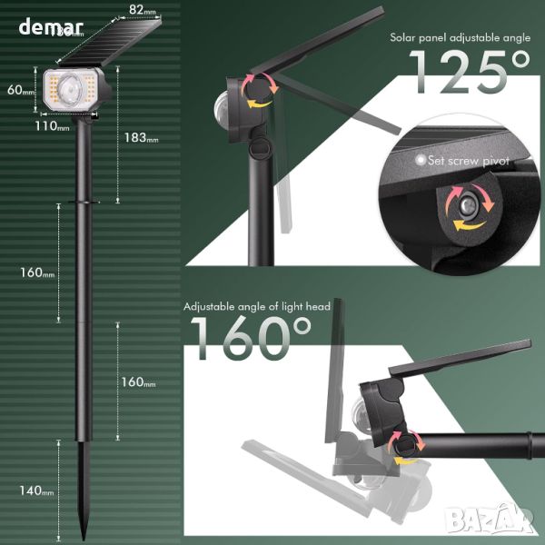 Quntis 2 броя ярки соларни лампи с 25 режима на осветяване