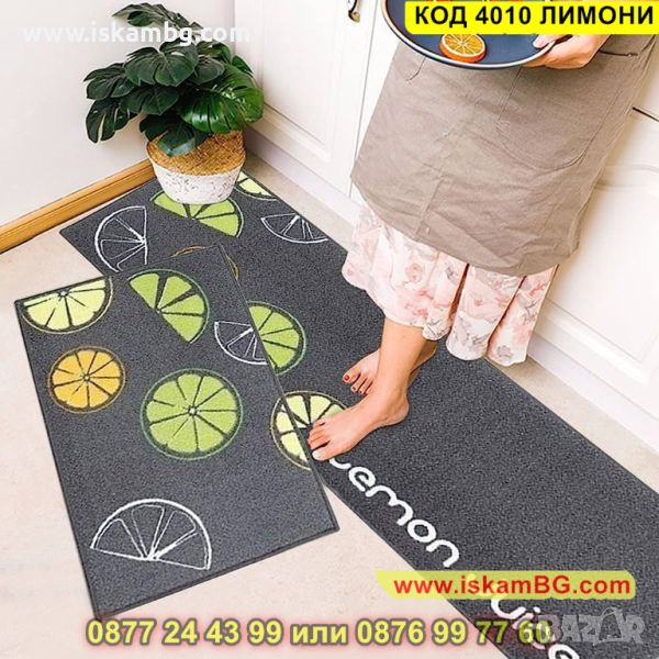 Килимче за кухня от 2 части с размери 40x60cm и 40x120cm - модел "Лимони" - КОД 4010 ЛИМОНИ → Обява 45480847