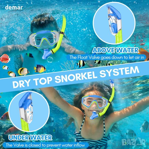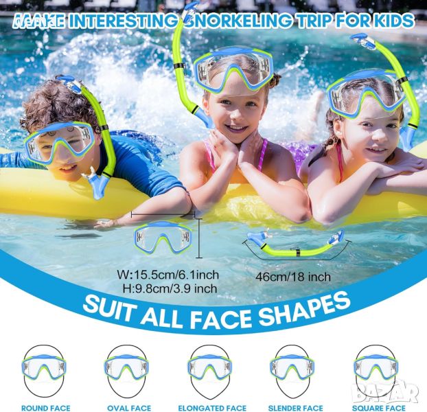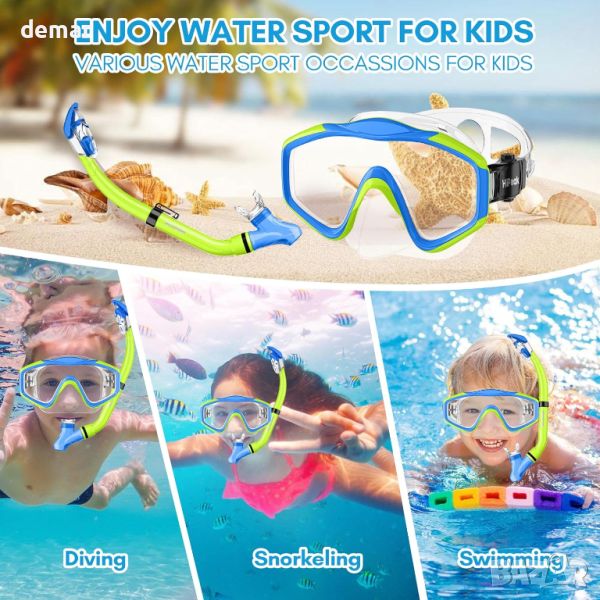 Детският комплект с шнорхел HiiPeak е предназначен за млади изследователи, включващ пълен шнорхел със сух връх и система с плуваща топка, която предотвратява навлизането на вода, осигурявайки безопасно и безпроблемно подводно дишане дори за начинаещи. Комплектът включва маска за гмуркане от закалено стъкло против замъгляване с широк изглед, която осигурява 180° панорамна гледка, което позволява на децата да виждат ясно подводните чудеса. Изработени от 100% хранителен силикон, маската и шнорхелът са нетоксични и безопасни, пасват удобно на деца на възраст 4-16 години, без да причиняват алергии или дискомфорт. Регулируемите презрамки осигуряват идеално, непропускливо прилягане. Този издръжлив, преносим комплект също се предлага с тапи за уши и мрежеста чанта за носене, което го прави идеален подарък за приключенски настроени деца, които се интересуват от гмуркане с шнорхел на партита край басейна, плажни ваканции или семейни пътувания.