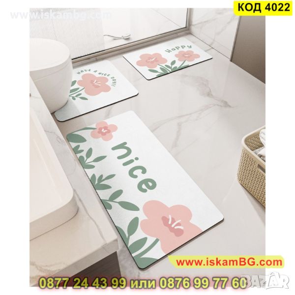 Комплект от 3 части противохлъзгащи постелки за баня и тоалетна с абсорбиращ ефект - КОД 4022