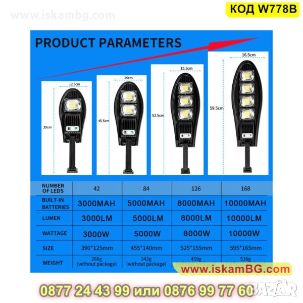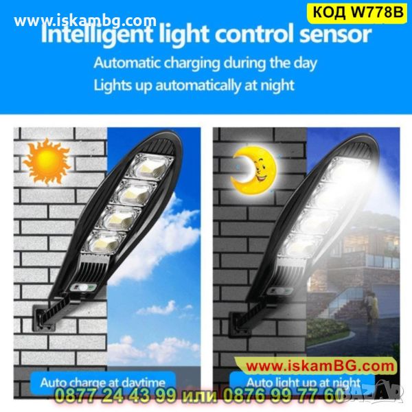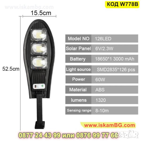 Улична соларна лампа със стойка и соларен панел - 1 брой