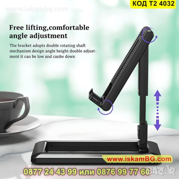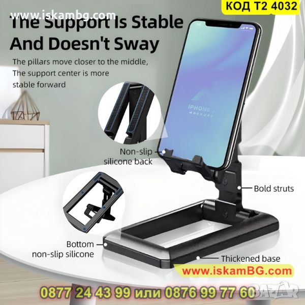 Сгъваема поставка за телефон с регулиране на височината - модел Т2 - КОД T2 4032