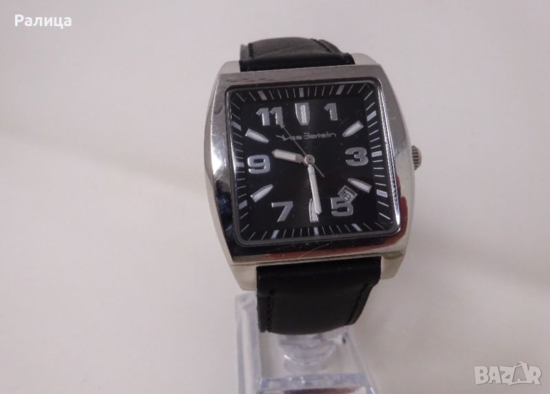 Френски кварцов часовник Yves Bertelin със стоманена каса, с нова батерия silver oxyde, с нова каишка от естествена кожа, размер на касата - 40 мм без коронката, в идеално състояние