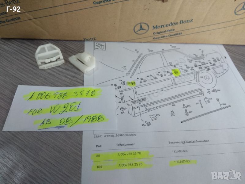 A0069883578**NEU**MERCEDES-BENZ**W20ЩИПКИ ЗА СТРАНИЧНИТЕ ЛАЙСНИ **