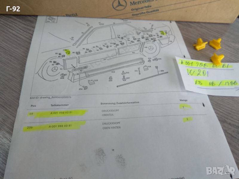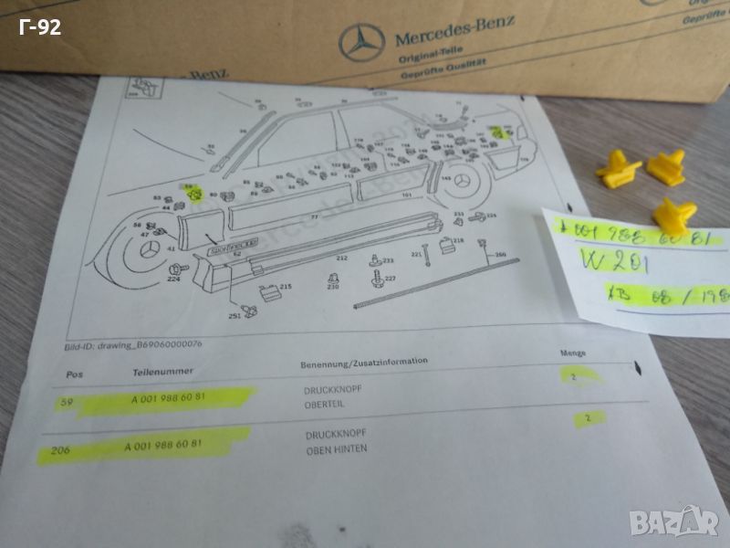 A0019886081**NEU**MERCEDES-BENZ**W201**ЩИПКИ ЗА СТРАНИЧНИТЕ ЛАЙСНИ **