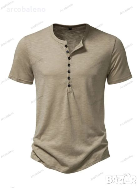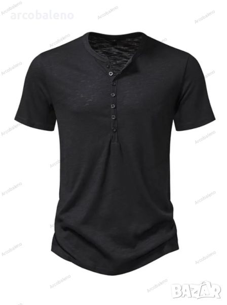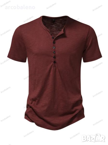 Мъжка ежедневна модна тениска с къс ръкав Henley, 4цвята