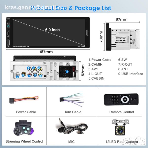 Подобрена безопасност при паркиране: 1 DIN аудио приемник за кола се предлага с камера за задно виждане, която гарантира, че паркирате точно и избягвате сблъсъци при маневриране в тесни пространства. Това повишава сигурността при паркиране и улеснява шофирането и паркирането.
