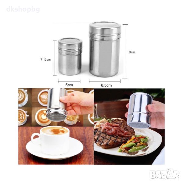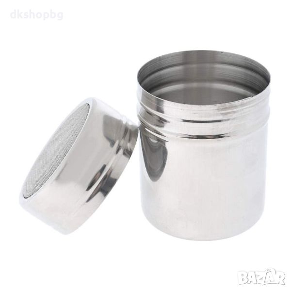 Удобно малко сито за поръсване с пудра захар на сладкиши, мекици и др. Може да се използва с какао, кафе, канела и други подправки.