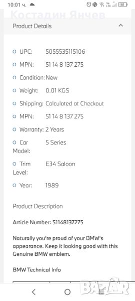 емблема надпис за BMW e34 оригинална → Обява 45491475