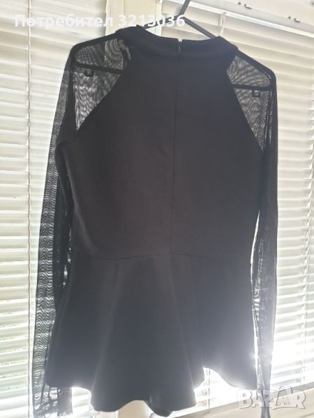 Нова елегантна черна блуза, с дълъг ръкав от тюл,пи тялото, от талията разкроена,на гърба с цип.