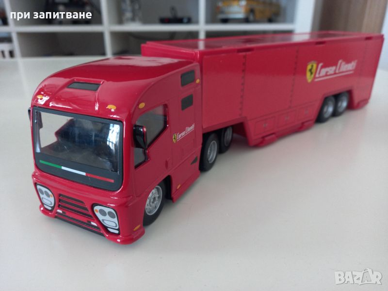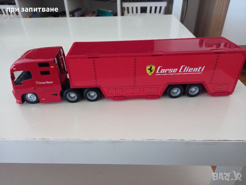 Камион FERRARI TRUCK F1 CAR TRANSPORTER TEAM, Burago,голям 1/43, 36 см. → Обява 45493044