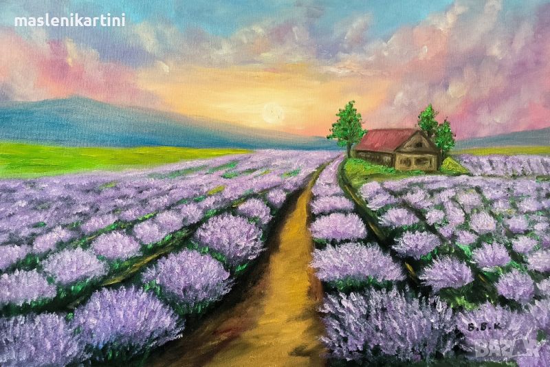 Лавандулово поле маслена картина → Обява 45493354