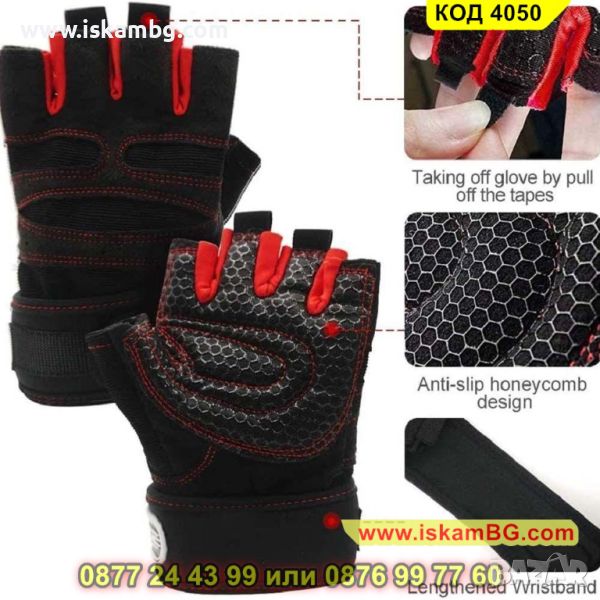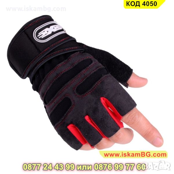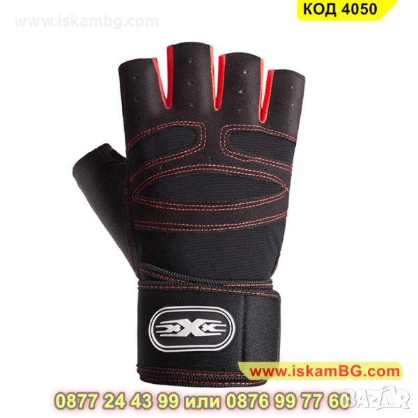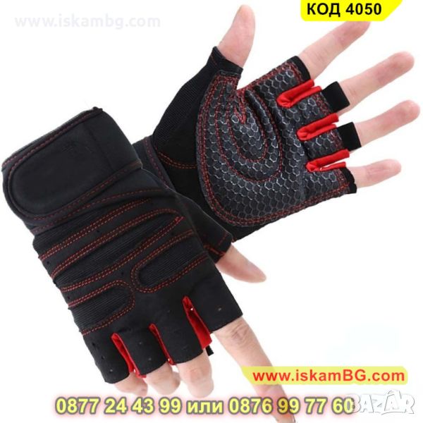 Мъжки ръкавици за велосипед или фитнес, черно с червено - КОД 4050