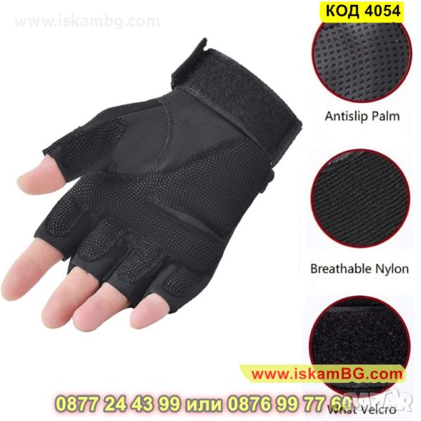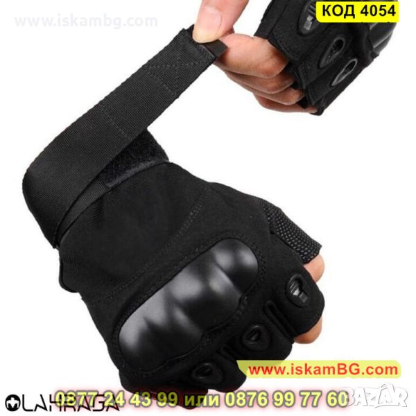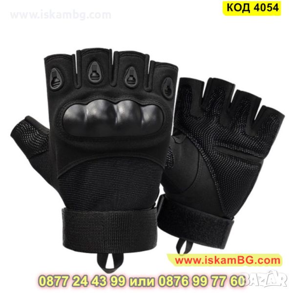 Тактически ръкавици с протектори на кокалчетата и регулируема каишка - черен цвят - КОД 4054