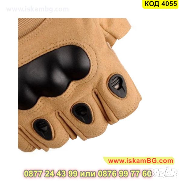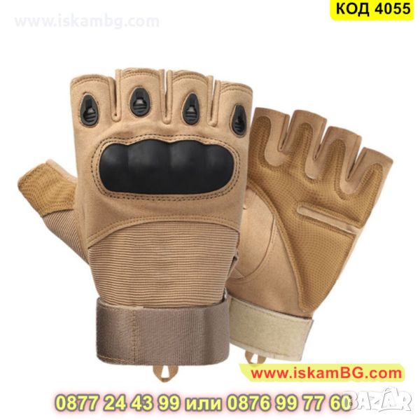 Бежови тактически ръкавици с протектор, без пръсти за различни видове спорт - КОД 4055
