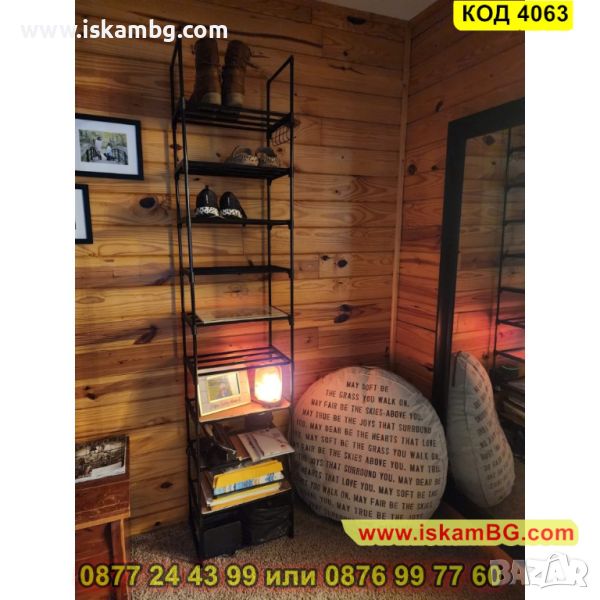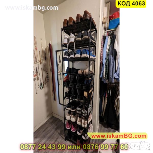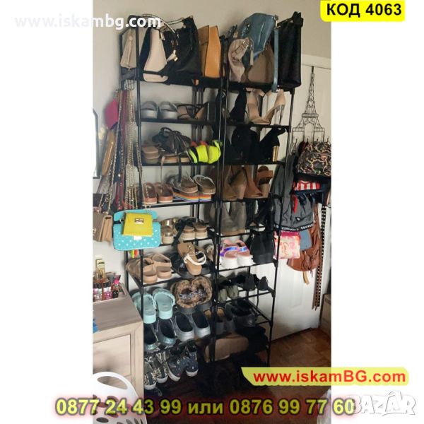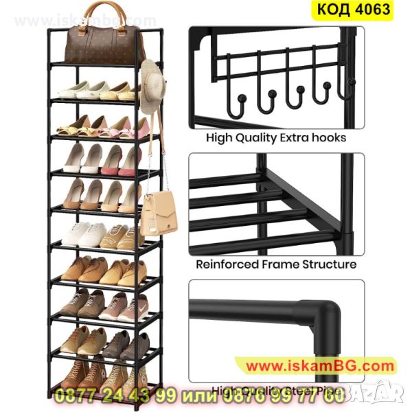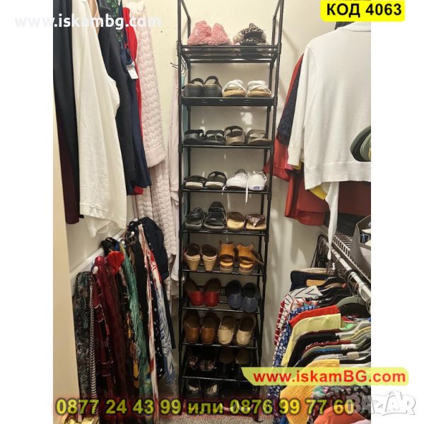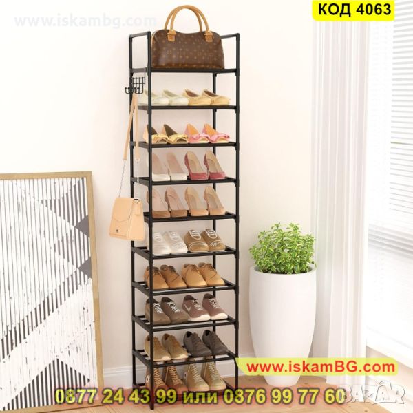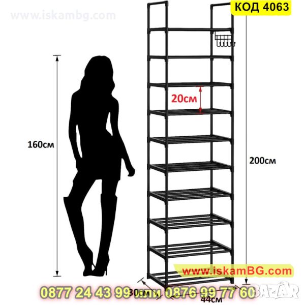 Висок стелаж за обувки в черно с 10 рафта - 200х44х30см - КОД 4063