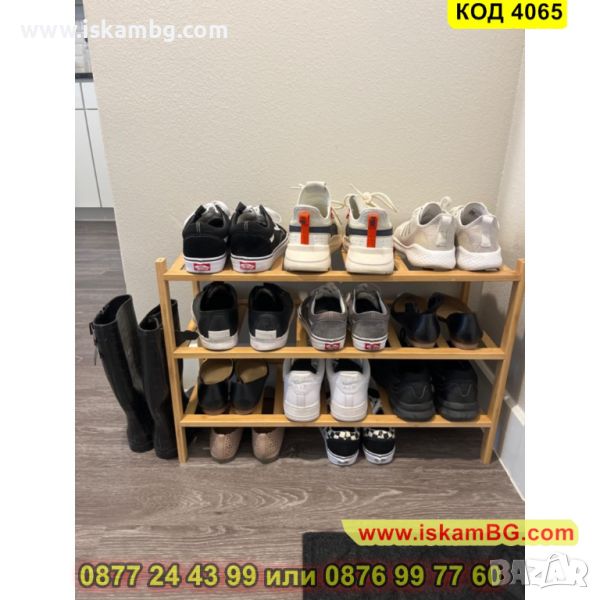 Бамбуков стелаж за обувки с 3 рафта