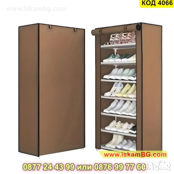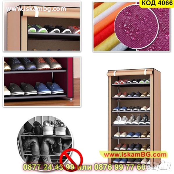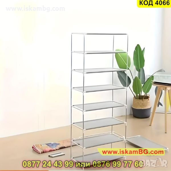 Стелаж за обувки с текстилно покривало на 7 реда в бежов цвят - 123х60х30см. - КОД 4066
