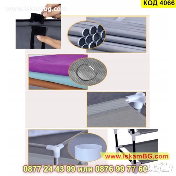 Този висококачествен шкаф за обувки удобно събира всичките ви обувки. Не трябва повече да се притеснявате къде да ги съхранявате в дома си. Висококачественото покривало от нетъкан плат има цип, който ще ви помогне да съхранявате обувките си скрити и ще ги пази от прах също така. Лесен е за почистване, не задържа вода и не се хлъзга. Текстилният шкаф има стабилна конструкция, заема малко място, лек и лесен е за пренасяне и ще се впише елегантно във вашия интериор.
