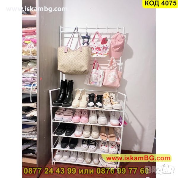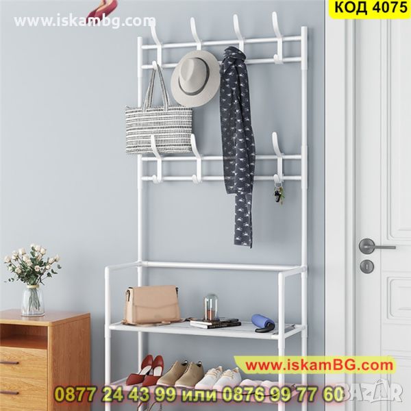 Мултифункционална етажерка, която може да се използва като стойка за обувки, закачалка за дрехи, шапки, обувки, чанти, чадъри и други.