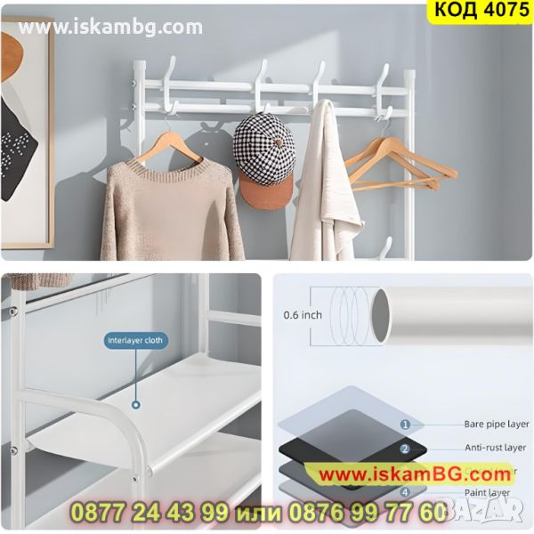 Метална етажерка за обувки и дрехи, Портманто в бял цвят 80x154x25cm - КОД 4075