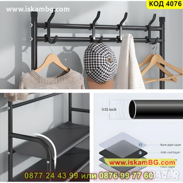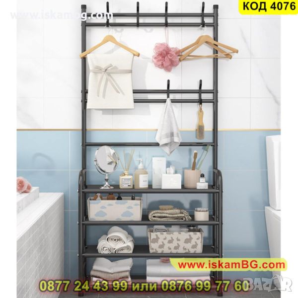 Мултифункционална етажерка, която може да се използва като стойка за обувки, закачалка за дрехи, шапки, обувки, чанти, чадъри и други.