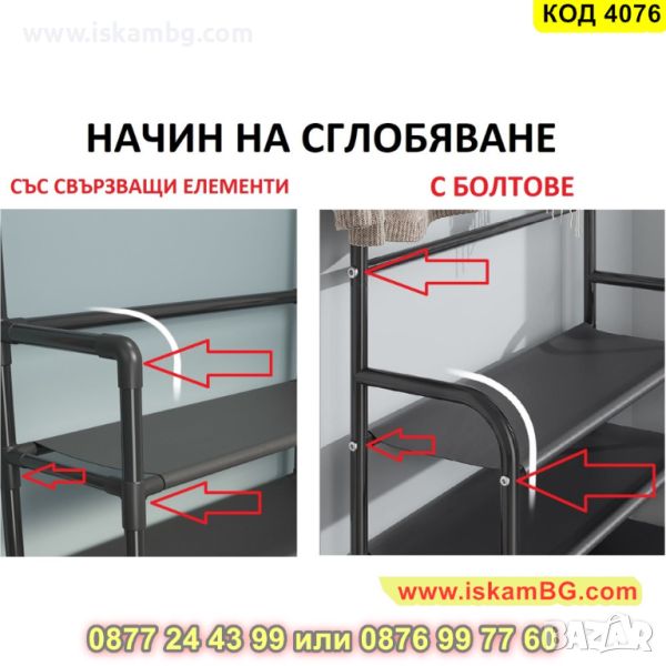 Направена с мисъл за ползвателя, закачалката с рафтове за обувки, притежава множество предимства: