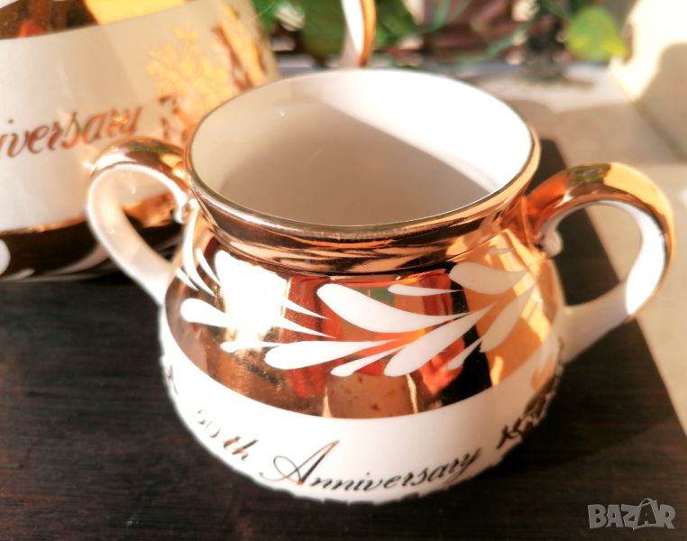 🏵️🌹🍵Порцеланов чайник и захарница с богата позлата направени за 50 годишнина⚜️