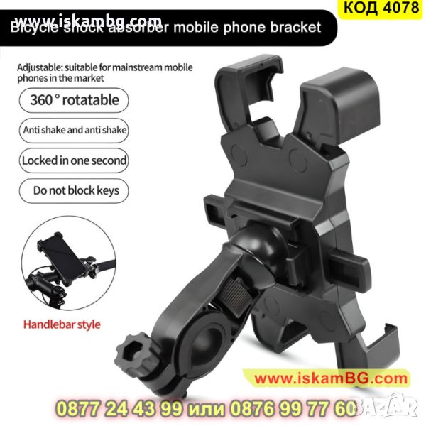 Поставка за телефон за колело и мотор с автоматично заключване и въртене на 360 градуса - КОД 4078