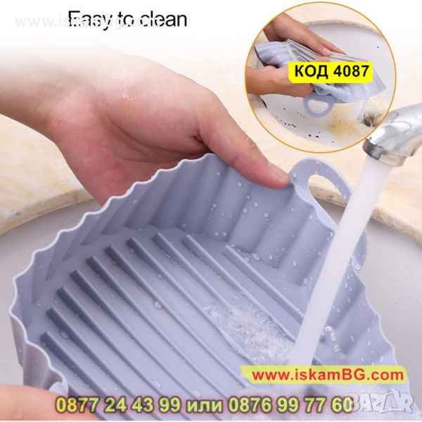 Малка силиконова форма за еър фрайър с диаметър 16см и странични дръжки - КОД 4087