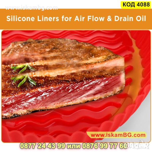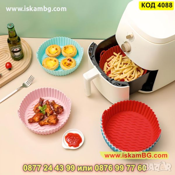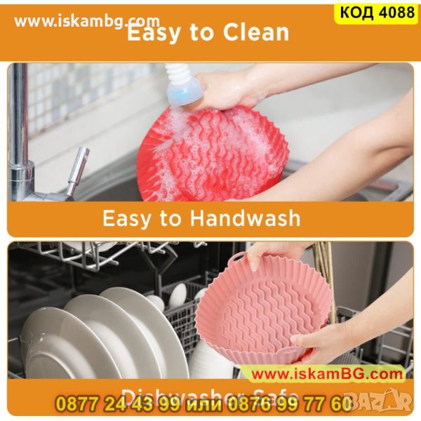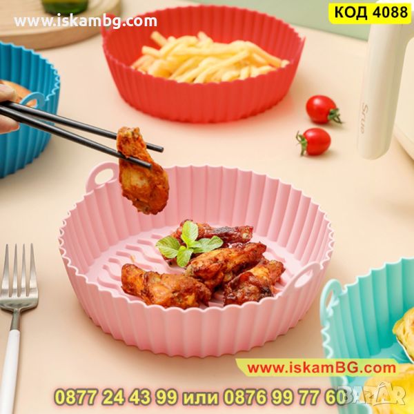 Представяме Ви нашата незалепваща тавичка от безвреден силикон, който е термоустойчив и няма да се разкъса или деформира след използването й. Тавата може да се използва многократно и притежава дръжки за лесно изваждане. Нейното незалепващо дъно ще предпази храната Ви от загаряне. Формата й е кръгла. Размерите на силиконовата тавичка за еър фрайър са: 20см диаметър в най-широката част и 17.3см диаметър на дъното, дълбочина: 6.5см. Почиства се лесно и бързо, като Ви осигурява вкусна и здравословна храна!
