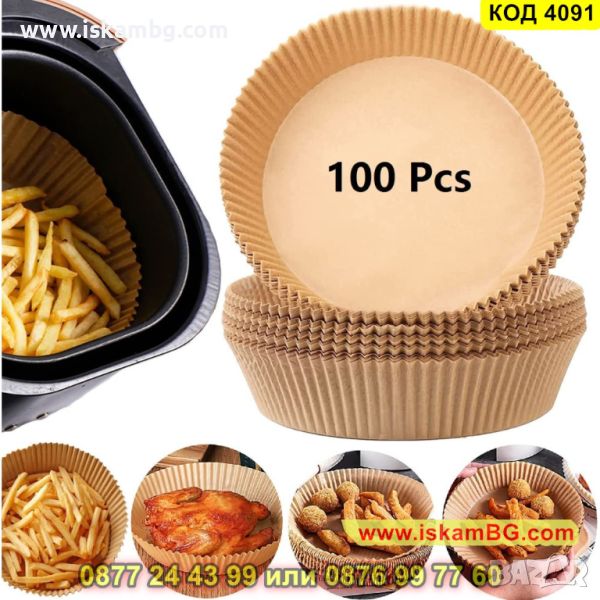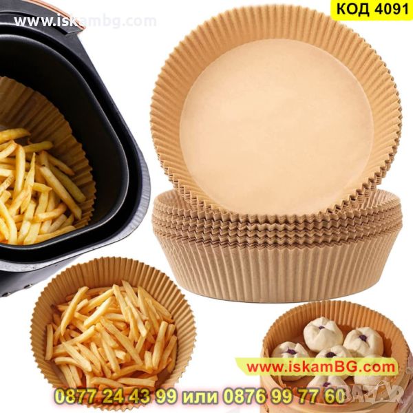 Незалепващи хартиени подложки за Air Fryer в опаковка от 100 броя с 16 см диаметър - КОД 4091