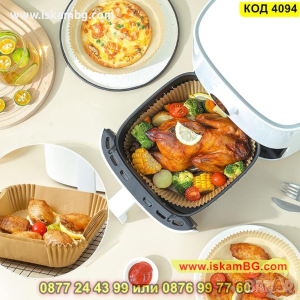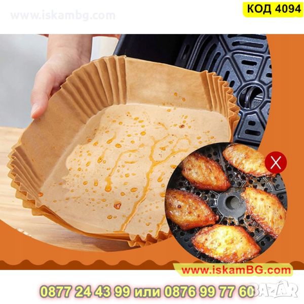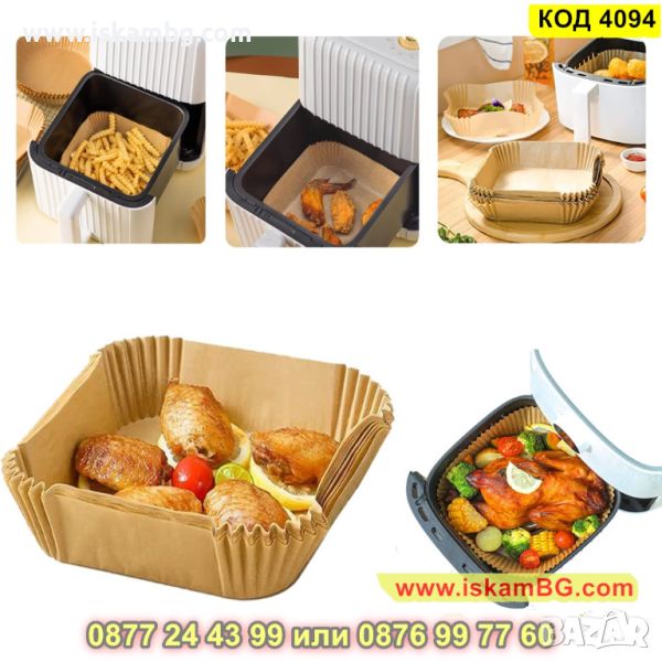 100 броя хартиени подложки за Еър Фрайър във формата на квадрат 20 см - КОД 4094