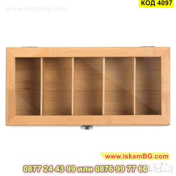 Дървена кутия за чай с 5 отделения от 100% естествен бамбук - КОД 4097