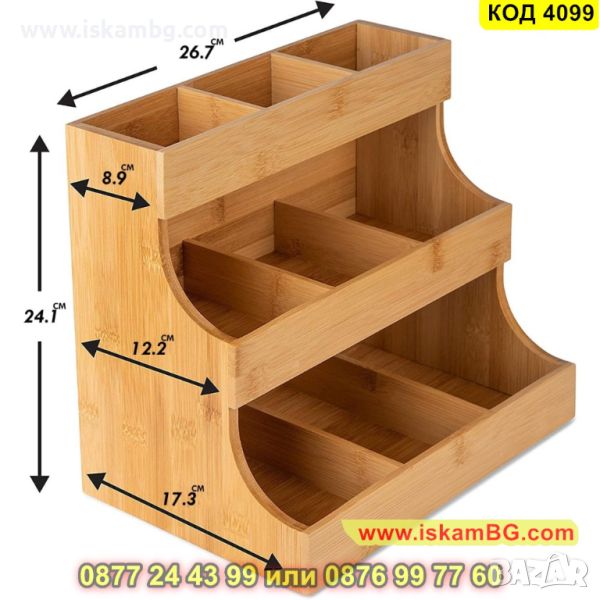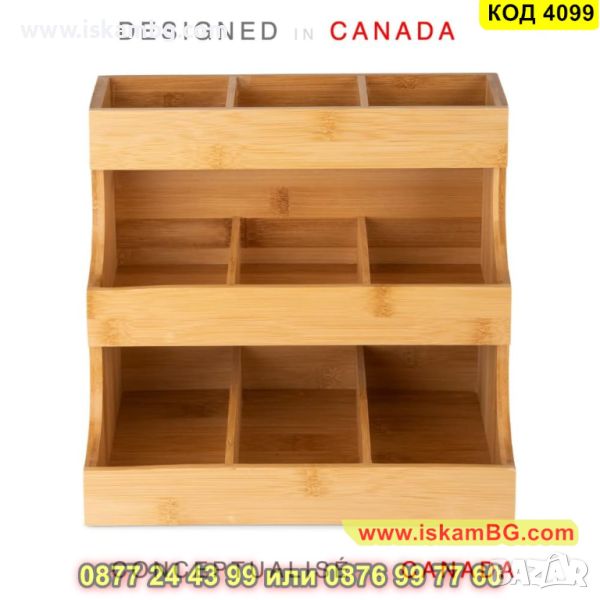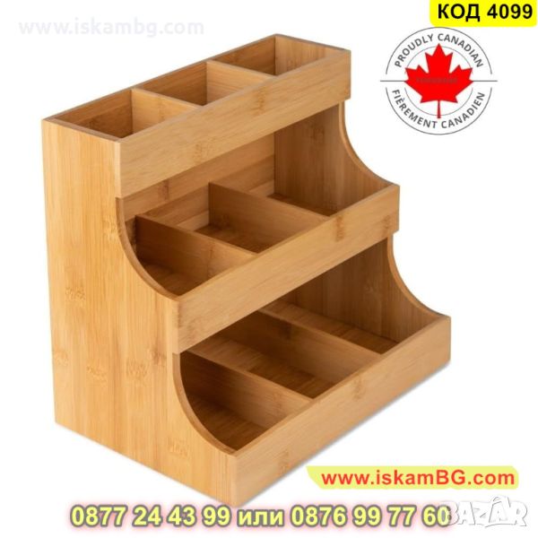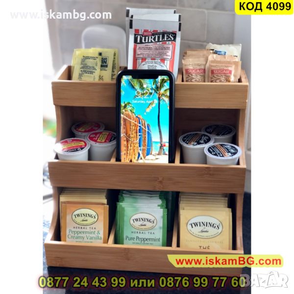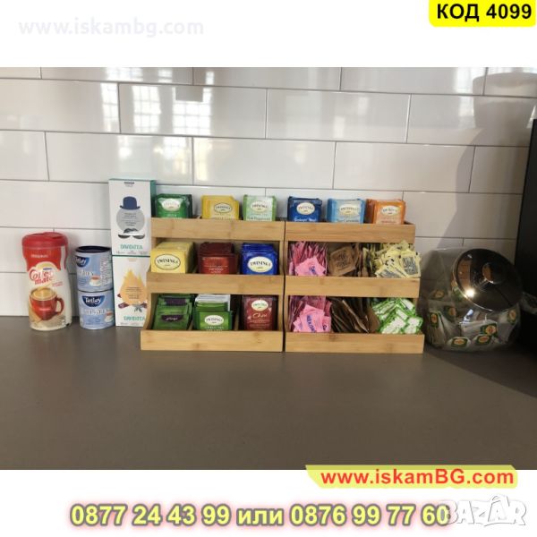 Вертикална кутия органайзер поставка за подреждане на 180 пакетчета чай – от бамбук - КОД 4099