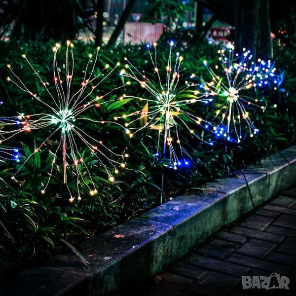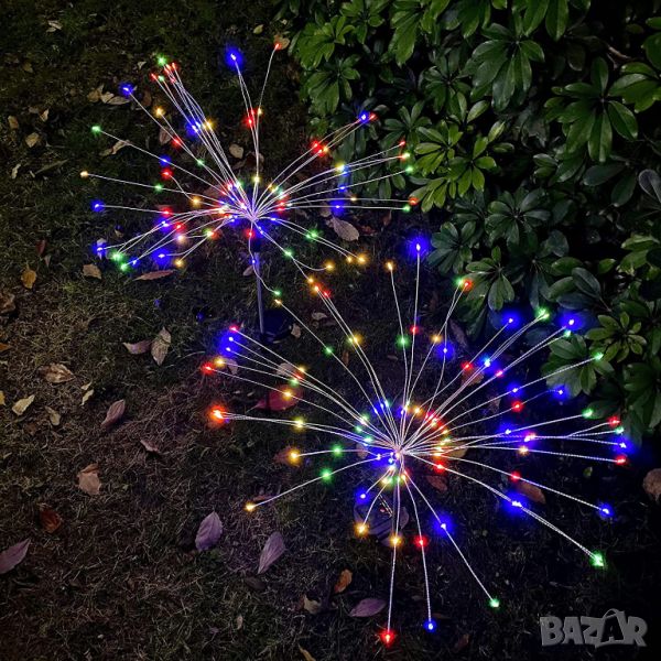 2 броя соларна цветна LED лампа форма на заря 150 диода за градина