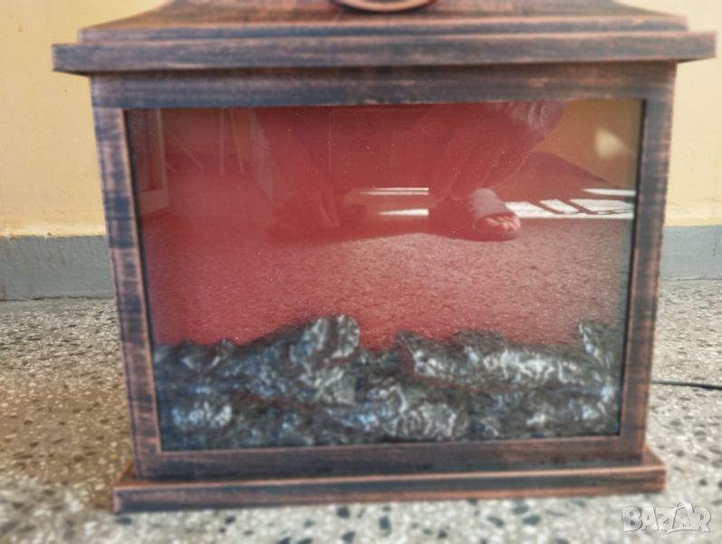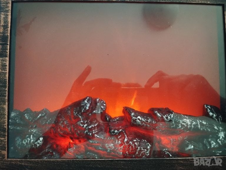 Пластмасов корпус,кварцов механизъм,работи.Включва се в компютър и имитира горяща камина.