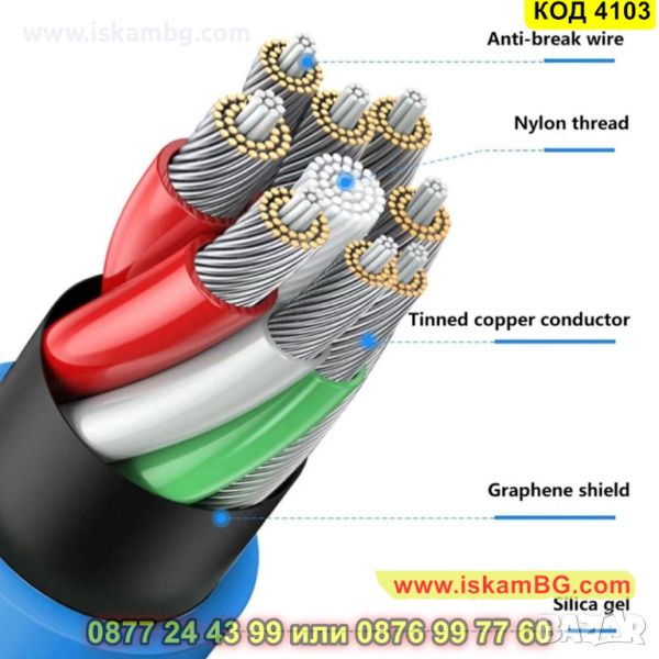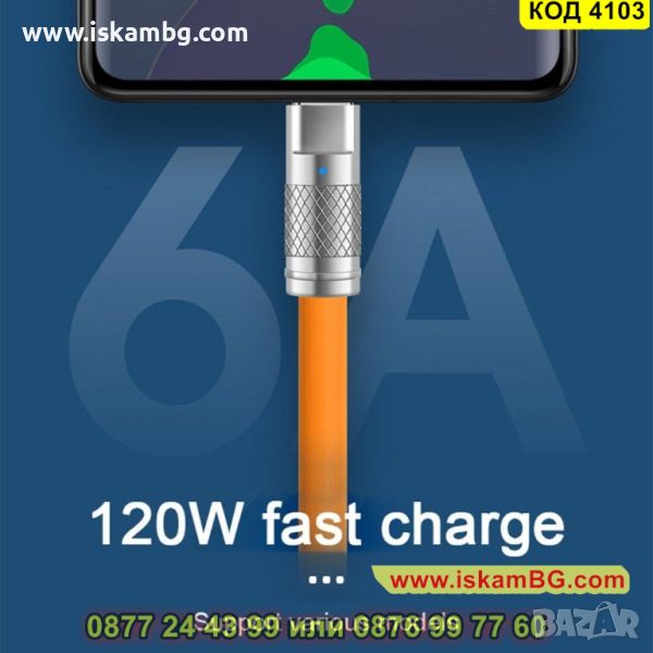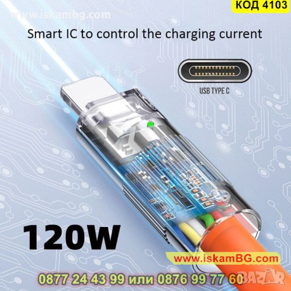 Бързо зареждащ USB Type C към Type C кабел с LED индикатор и 120W мощност - КОД 4103