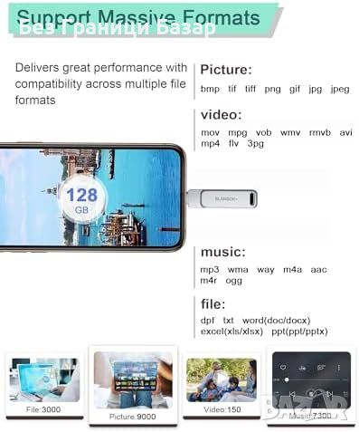 Нова Флашка за телефон 128GB памет за iPhone/Android/PC Бърз Трансфер