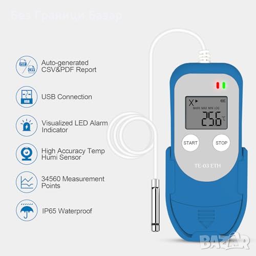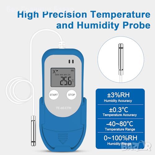 Точен външен сензор: Мери температури от -40°C до +85°C и влажност от 0% до 100%RH с висока прецизност.