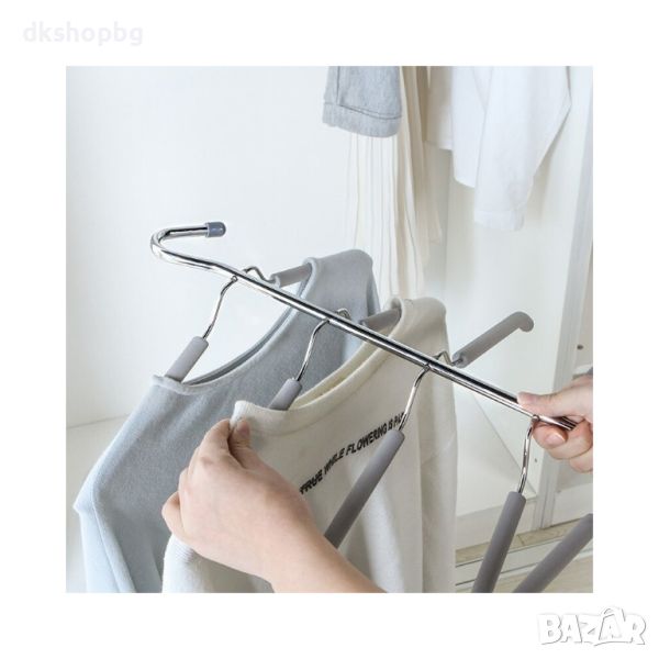 Тази закачалка Ви позволява да закачите дрехите си в гардероба и те да не се мачкат и зацапват.