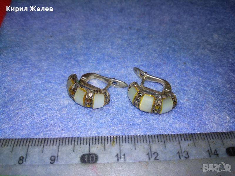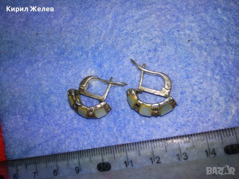 ПРЕКРАСНИ СТАРИ АНГЛИЙСКИ СРЕБЪРНИ ОБЕЦИ СРЕБРО 925 с ШЛИФОВАН МЛЕЧНОБЯЛ АХАТ РЕТРО ИЗРАБОТКА 44248