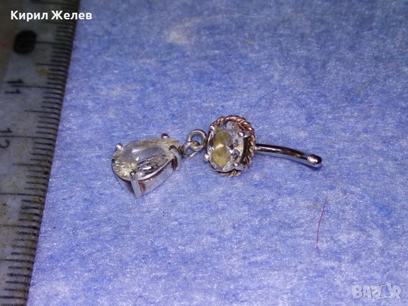 СКЪПОЦЕННА СРЕБЪРНА ОБЕЦА ПИЪРСИНГ РОДИРАНО СРЕБРО 925 с ФАСЕТИРАНИ ИСКРЯЩИ ЦИРКОНИ 43323