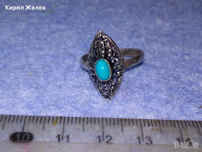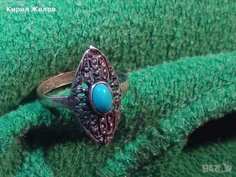 СТАР АЖУРЕН АР НУВО СТИЛ СРЕБЪРЕН ПРЪСТЕН с РЪЧНО ЮВЕЛИРНО ПОЛИРАН ТЮРКОАЗ 43211