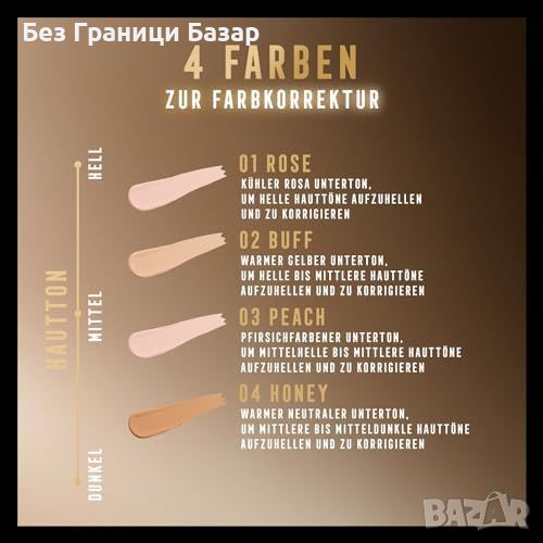 Цветокоригиращ: Предназначен да неутрализира тъмните кръгове под очите.