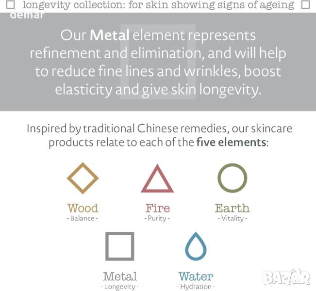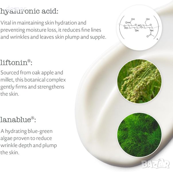 Награден за най-добър овлажнител (възраст 40+) на наградите за кратък списък за красота за 2023 г., този ежедневен овлажнител съчетава хиалуронова киселина и лифтонин за подобряване на хидратацията и стегнатостта, намалявайки бръчките за по-младежки вид. Той съдържа Lanablue, синьо-зелени водорасли, известни със своите дълбоки ефекти против бръчки, и е вдъхновен от металния елемент на традиционната китайска медицина, специално насочен към зряла или застаряваща кожа. Идеален за употреба сутрин и вечер, той е без жестокост и е произведен в Обединеното кралство.