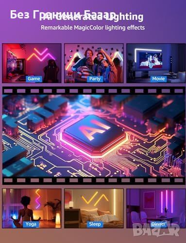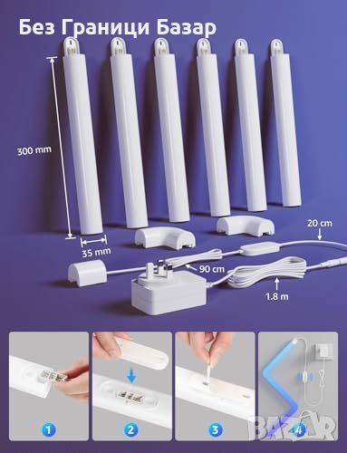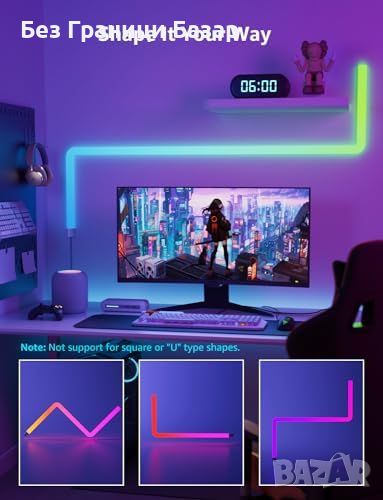Гъвкав дизайн: Комплектът включва 6 светлинни сегмента и 2 ъгъла, лесно съединяване и монтиране.
